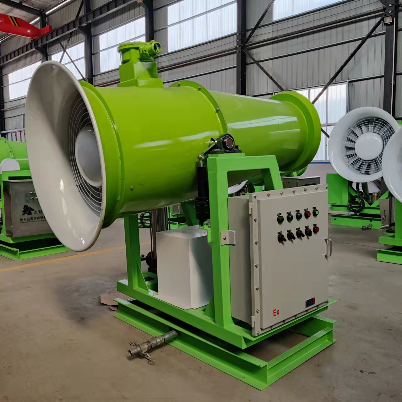 風(fēng)送式除塵噴霧機是一種經(jīng)過(guò)特殊設計,能夠實(shí)現將均勻連續混合物(水、空氣、添加劑)噴射超遠距離的專(zhuān)利產(chǎn)品,成霧水滴尺寸均可控,噴射有指向性。