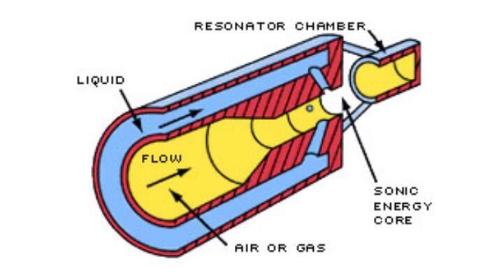 微米級干霧抑塵裝置是由壓縮空氣驅動(dòng)聲波震蕩器,通過(guò)高頻聲波的音爆,作用在噴頭共振室處將水高度霧化,產(chǎn)生10µm以下的微細水霧顆粒(直徑10µm以下的霧稱(chēng)干霧)噴向起塵點(diǎn),使水霧顆粒與粉塵顆粒相互碰撞、粘結、聚結增大,并在自身重力作用下沉降,達到抑塵的作用。