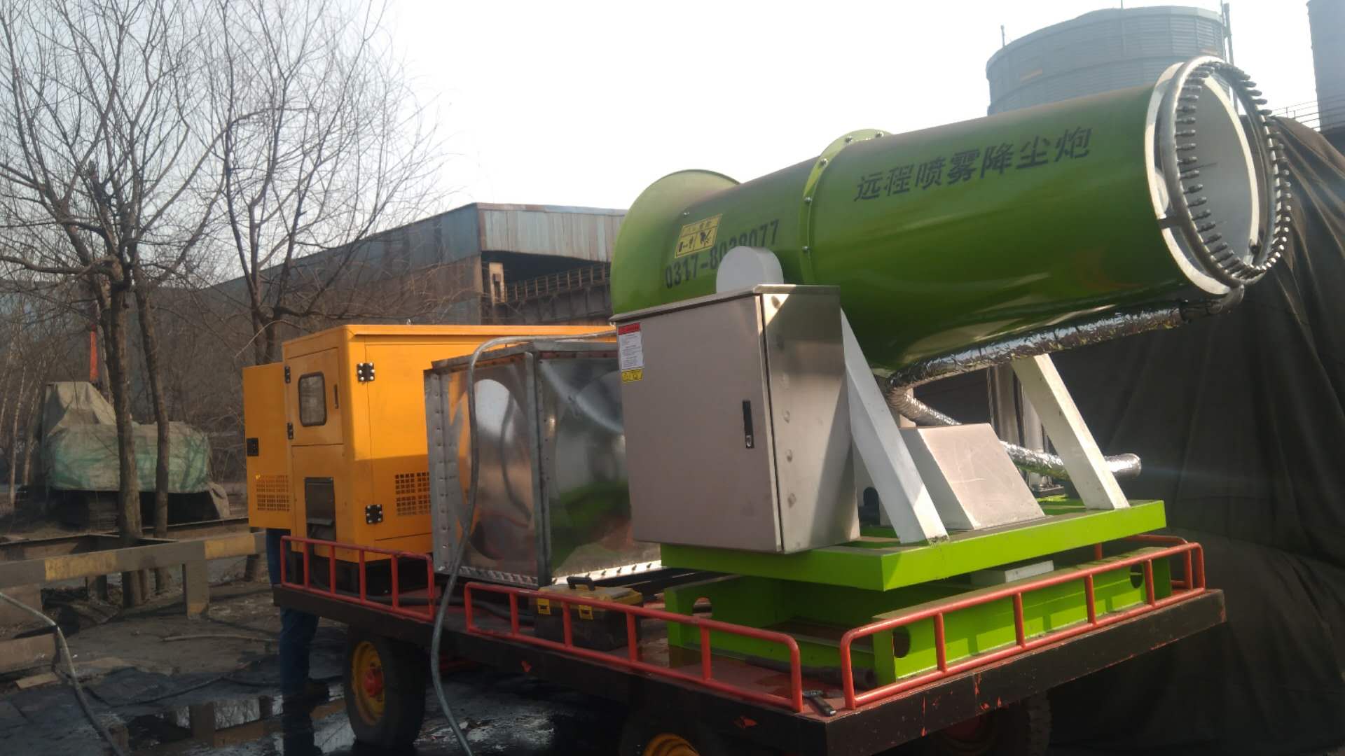 除塵霧炮機主要作用是噴霧抑塵,同時(shí)具備灑水的功能,有效抑制揚塵的產(chǎn)生。在污染區域進(jìn)行液霧降塵、分解淡化空氣中的顆粒濃度、將漂浮在空氣中的污染顆粒物、塵埃等迅速逼降地面,達到治理空氣的明顯良好效果。