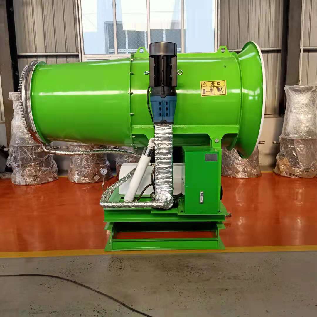 除塵噴霧機是根據風(fēng)送原理,先使用進(jìn)口高壓泵、微細霧化噴嘴將水霧化,再利用風(fēng)機風(fēng)量和風(fēng)壓將霧化后的水霧送到較遠距離,使得水霧到達較遠距離同時(shí)能夠覆蓋 大面積,水霧與粉塵凝結后降落,從而達到降塵目的。目前在許多露天堆料場(chǎng)、作業(yè)現場(chǎng),作業(yè)粉塵和局部揚塵是粉塵治理的難題。很多企業(yè)過(guò)去采用水噴淋的措施治理,但覆蓋面積小、用水量大等問(wèn)題使水噴淋的治理效果極不理想。它可以根據用戶(hù)現場(chǎng)的實(shí)際污染狀況以及粉塵量的多少,量身設計遠射程噴霧方案,以達到理想的粉塵治理效果。